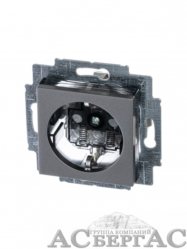 5520H-A03457 69W Розетка с заземлением со шторками, Levit, сталь/дымчатый чёрный ABB
