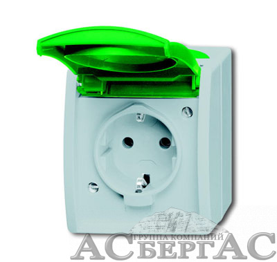 20 EWN-13-53 Розетка SCHUKO 16А 250В IP44 для открытого монтажа, c зелёной крышкой, серия ocean, цвет серый/сине-зелёный ABB