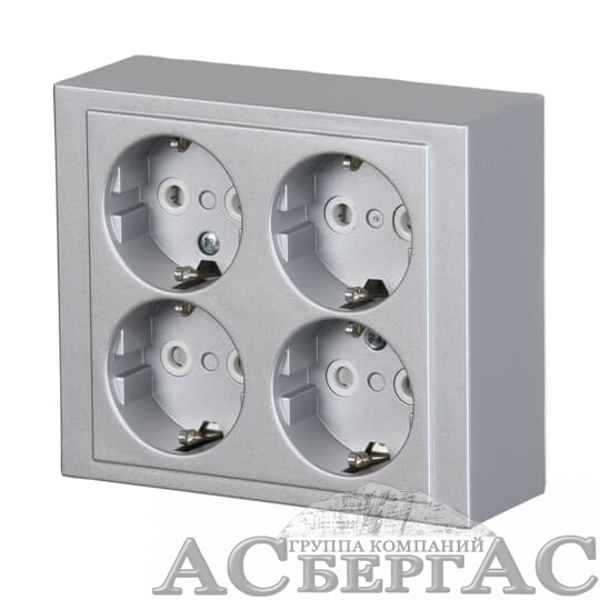 404EA-83 Розетка накладного монтажа, Schuko 4 поста, Impressivo, алюминий ABB