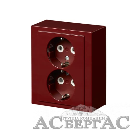 402EA-02 Розетка Double Shuko 16А 230В накладная Impressivo, красная R3011 ABB