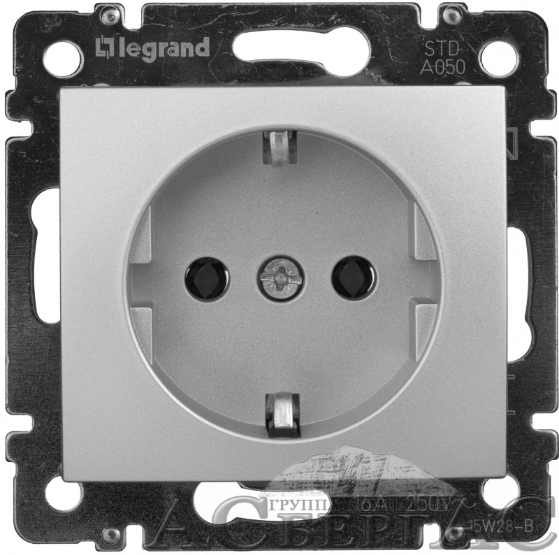 Розетка 2К+З винтовой зажим (алюминий) Valena Legrand
