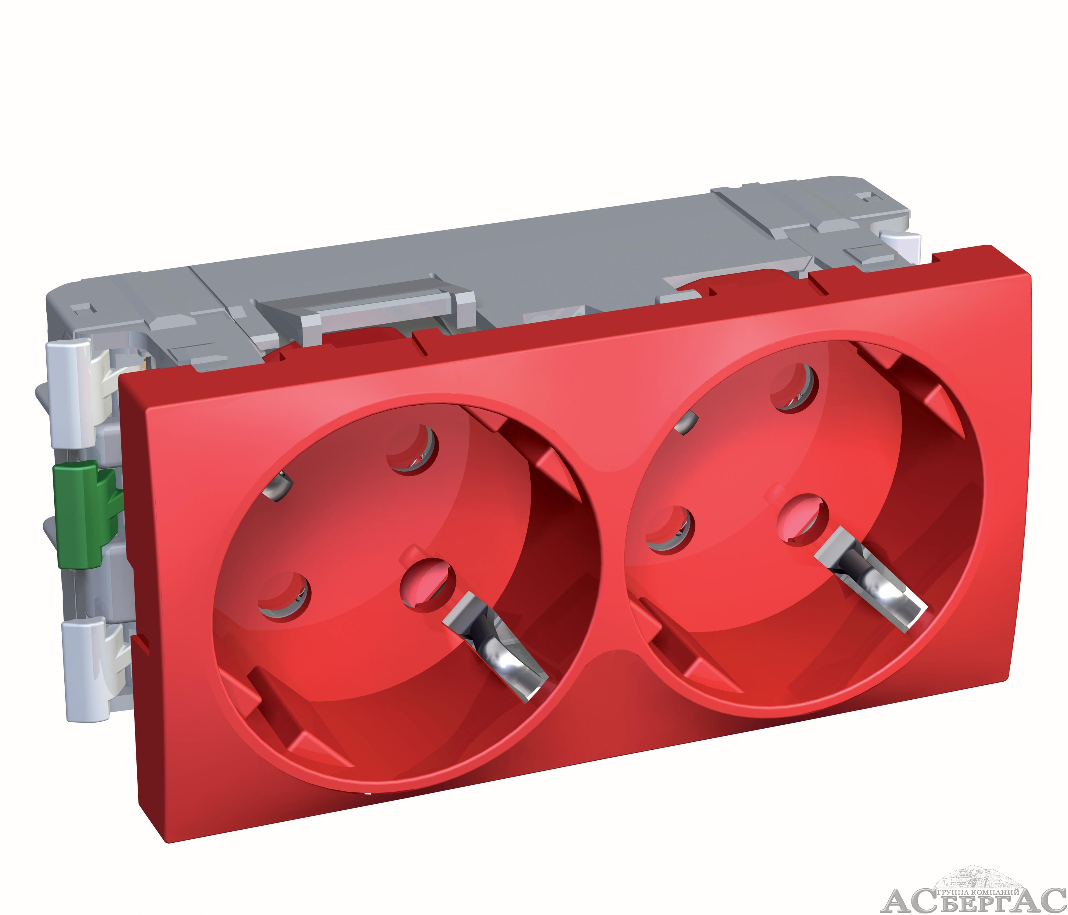 Розетка х2 45 2p+e штор блок крас Schneider Electric