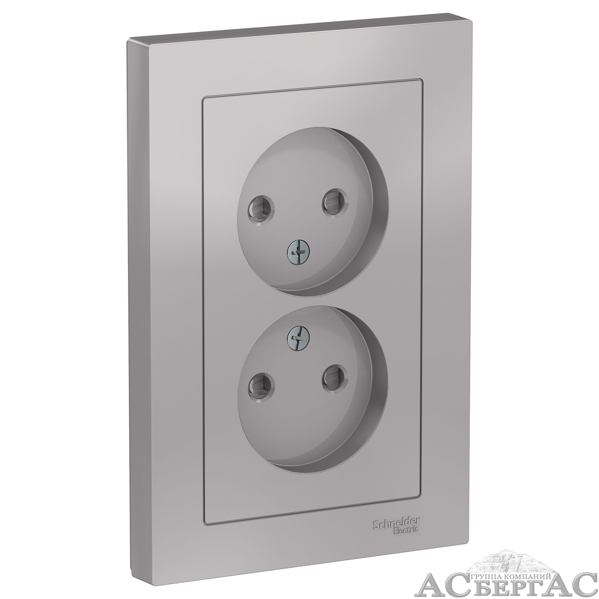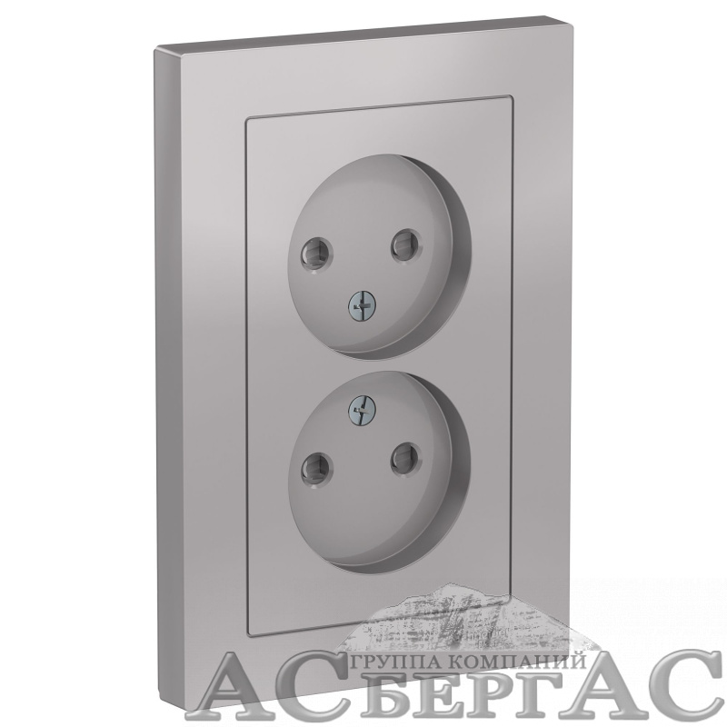 Розетка двойная без заземления со шторками,16А, в сборе (алюминий) Atlas Design Systeme Electric