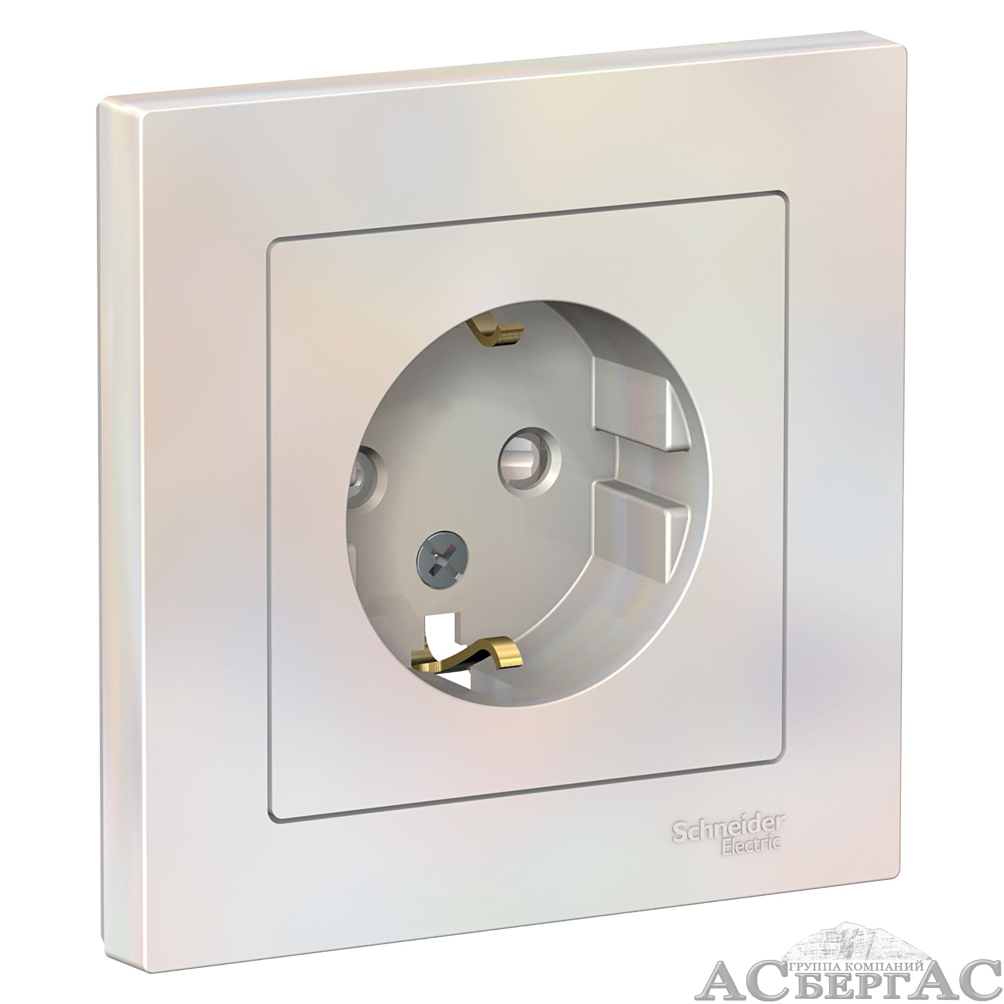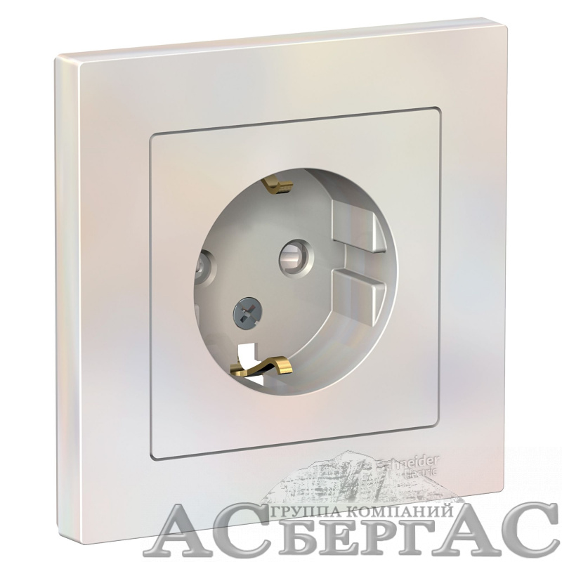Розетка с заземлением со шторками, 16А, в сборе (жемчуг) Atlas Design Systeme Electric