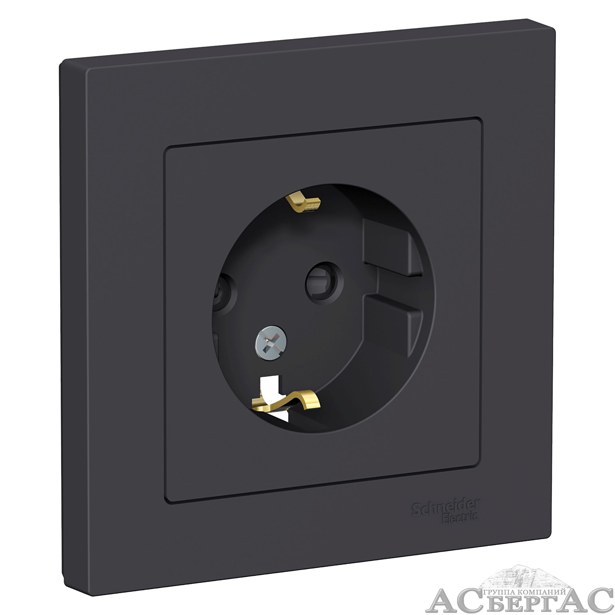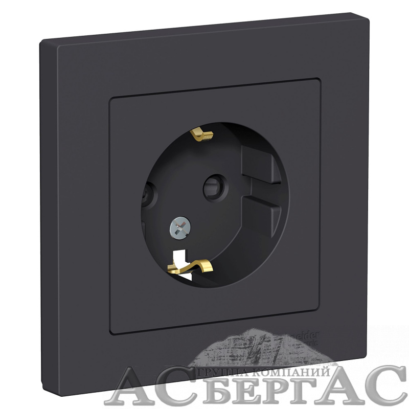 Розетка с заземлением со шторками, 16А, в сборе (карбон) Atlas Design Systeme Electric