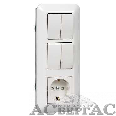 Блок С/У: розетка с зазем.+ выкл.2-клав.+ выкл 2-клав (белый) Прима Systeme Electric