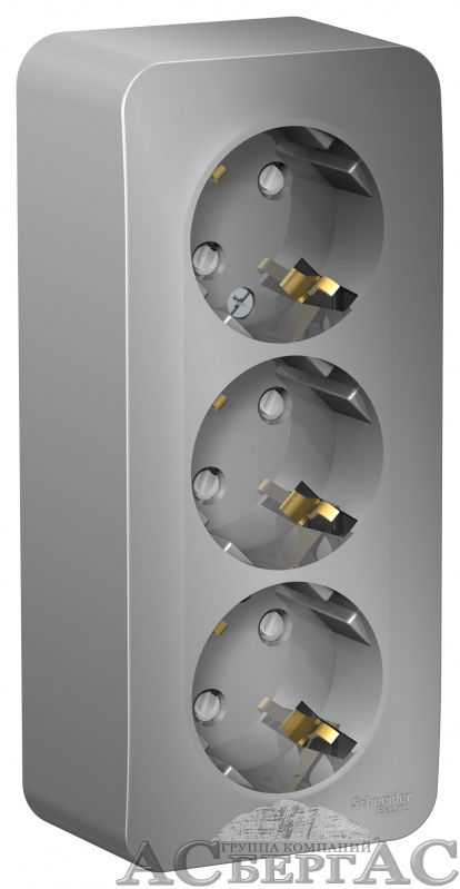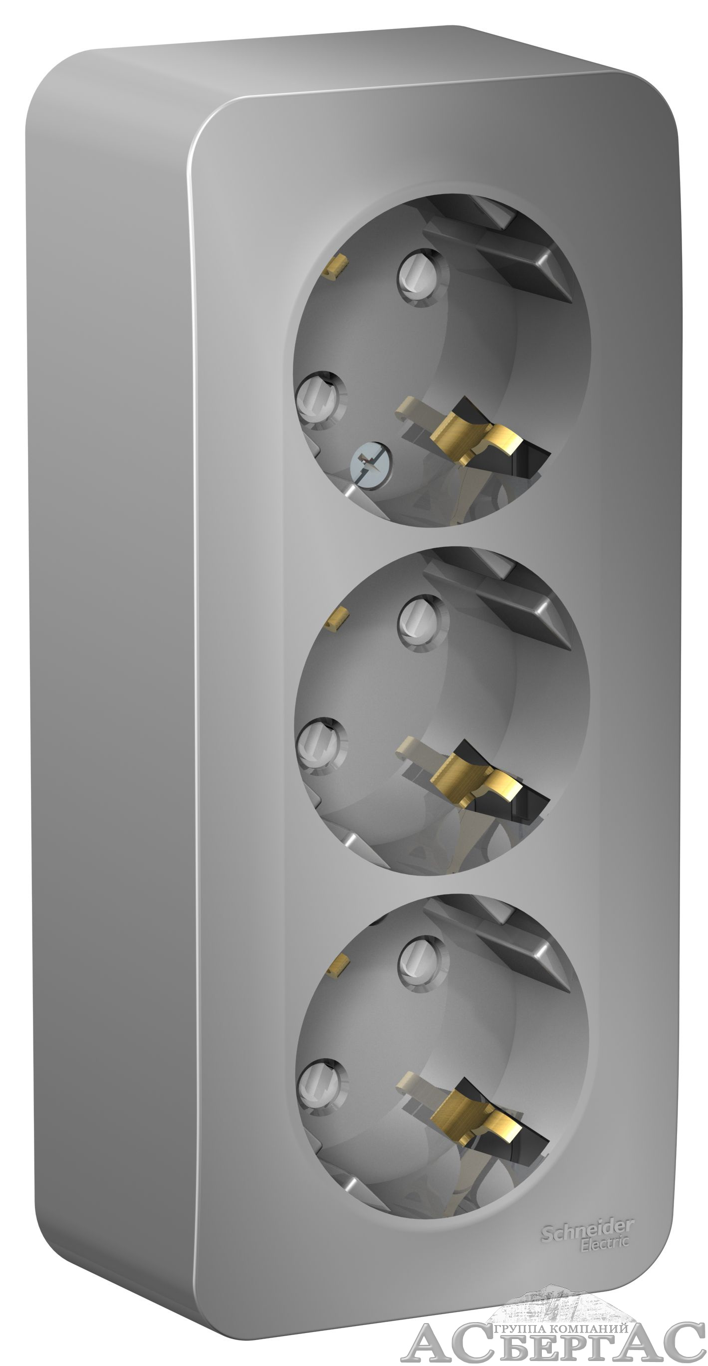 Розетка тройная, с заземлением, со шторками, О/У, изол.пл.,16А, 250В (алюминий) Blanca Systeme Electric
