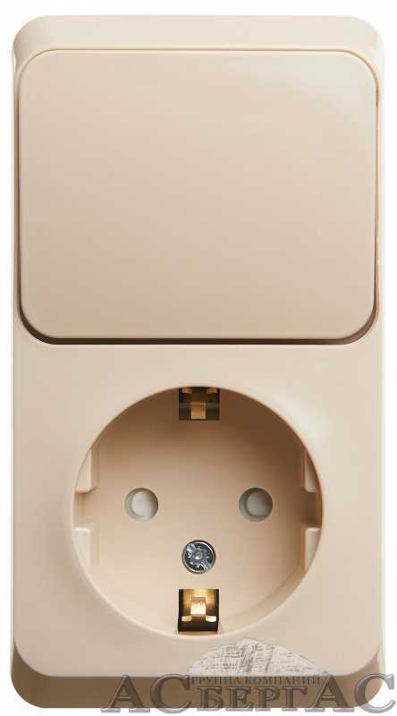 Блок О/У: розетка с зазем. со шт. + выключатель 1-клавиш. (кремовый) Этюд Systeme Electric