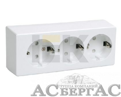 РС23-3-ББ Розетка трехместная с з/к для открытой установки ИЭК
