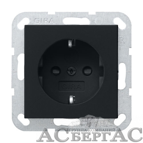 Розетка с заземлением, со шторками (черный матовый) System 55 Gira