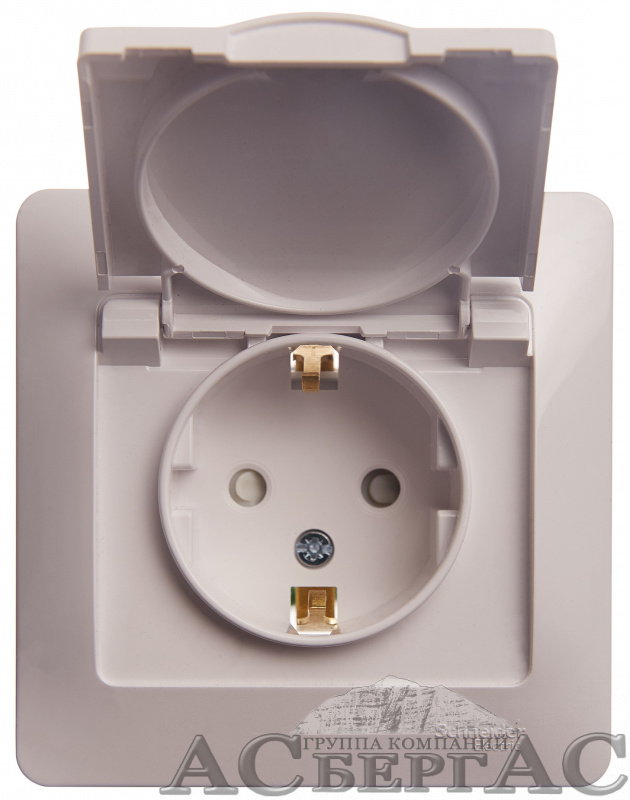 Розетка с заземлением со шторками с крышкой, 16А, в сборе (белый) Glossa Systeme Electric