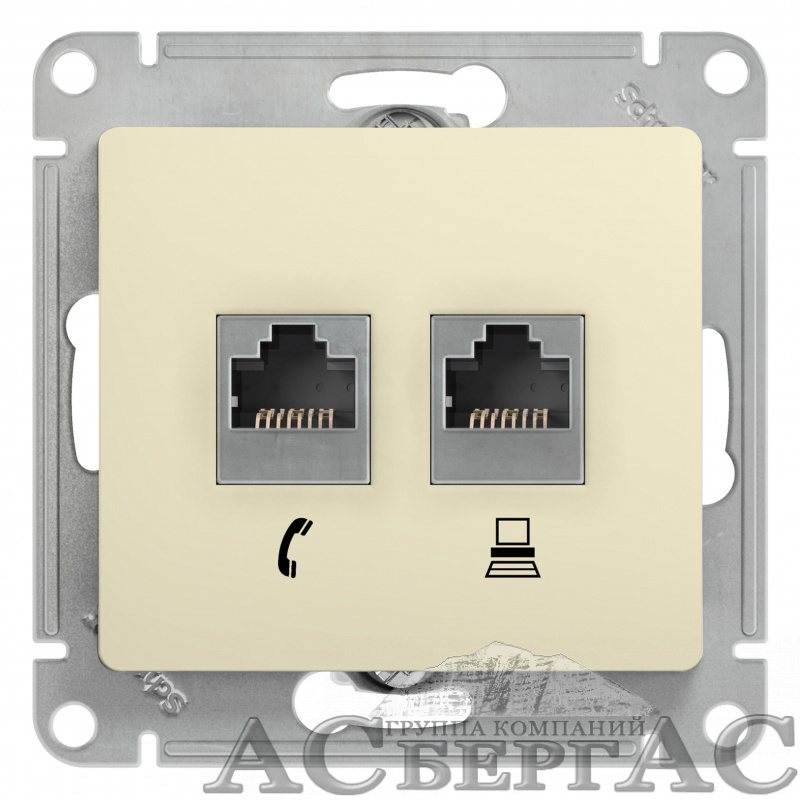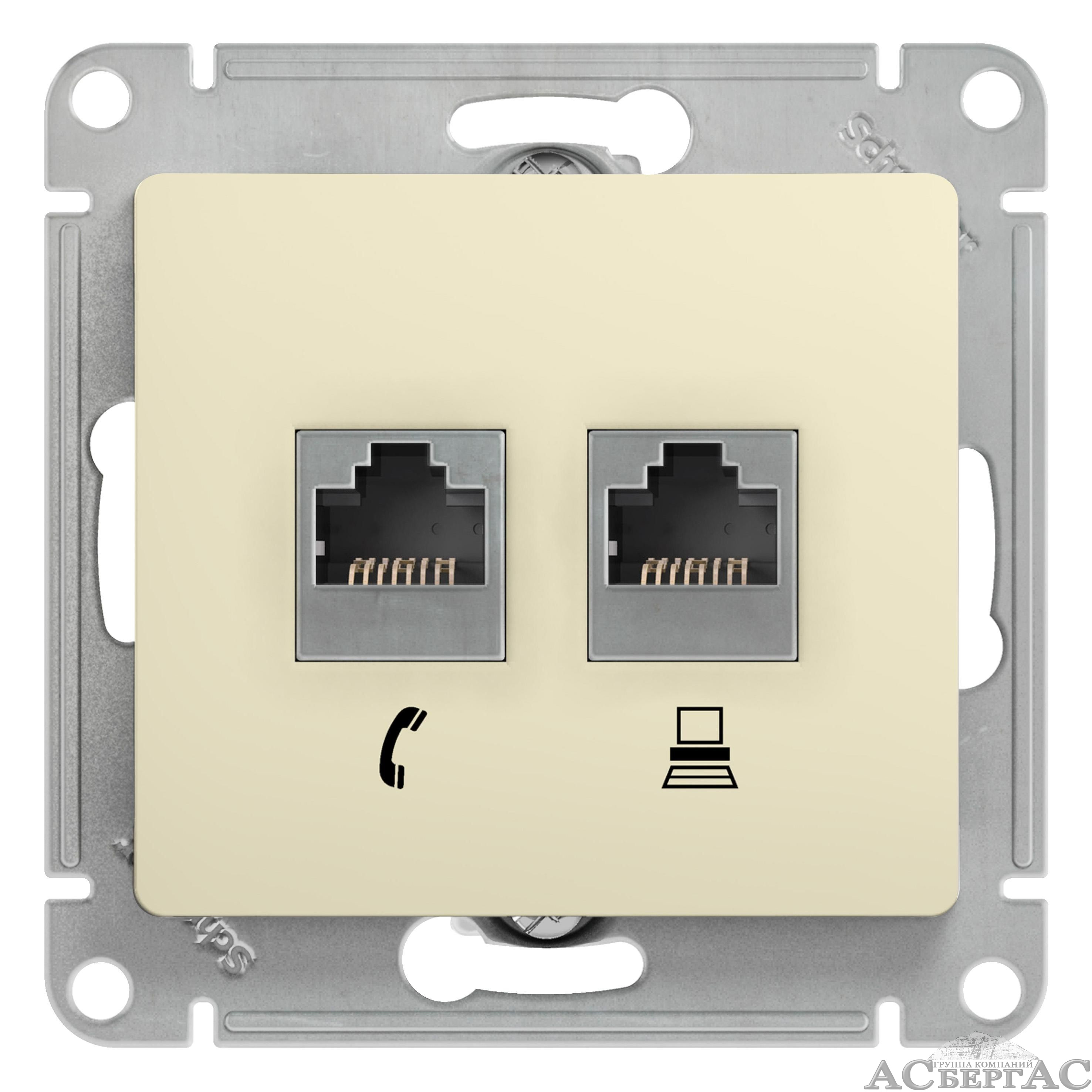 Розетка двойная телефонная + компьютерная RJ11+RJ45, кат.5E, (бежевый) Glossa Systeme Electric