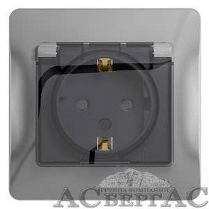 Розетка с заземлением и со шторками 16А IP44, в сборе (алюминий) Glossa Systeme Electric