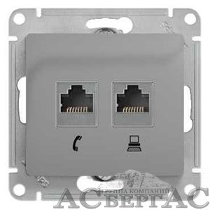 Розетка двойная RJ11+RJ45, кат.5e, механизм (алюминий) Glossa Systeme Electric
