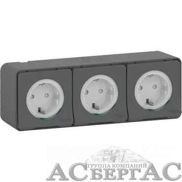 Блок из трех розеток открытой устан, винтов. клеммы IP55 (антрацит) Mureva Styl Schneider Electric