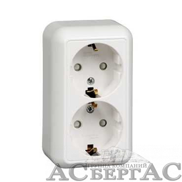 Розетка двойная, с заземлением, со штороками, О/У, изол.пл.16А 250В (белый) Прима Systeme Electric