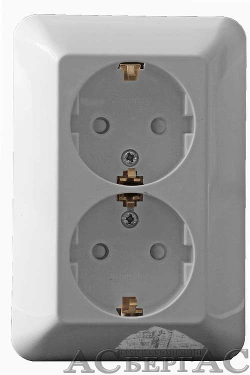 Розетка двойная со штороками, С/У, 16А, 250В, (белый) Прима Systeme Electric