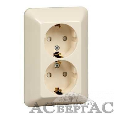 Розетка двойная, с заземлением, со шторками, С/У,16А 250В (слоновая кость) Прима Systeme Electric