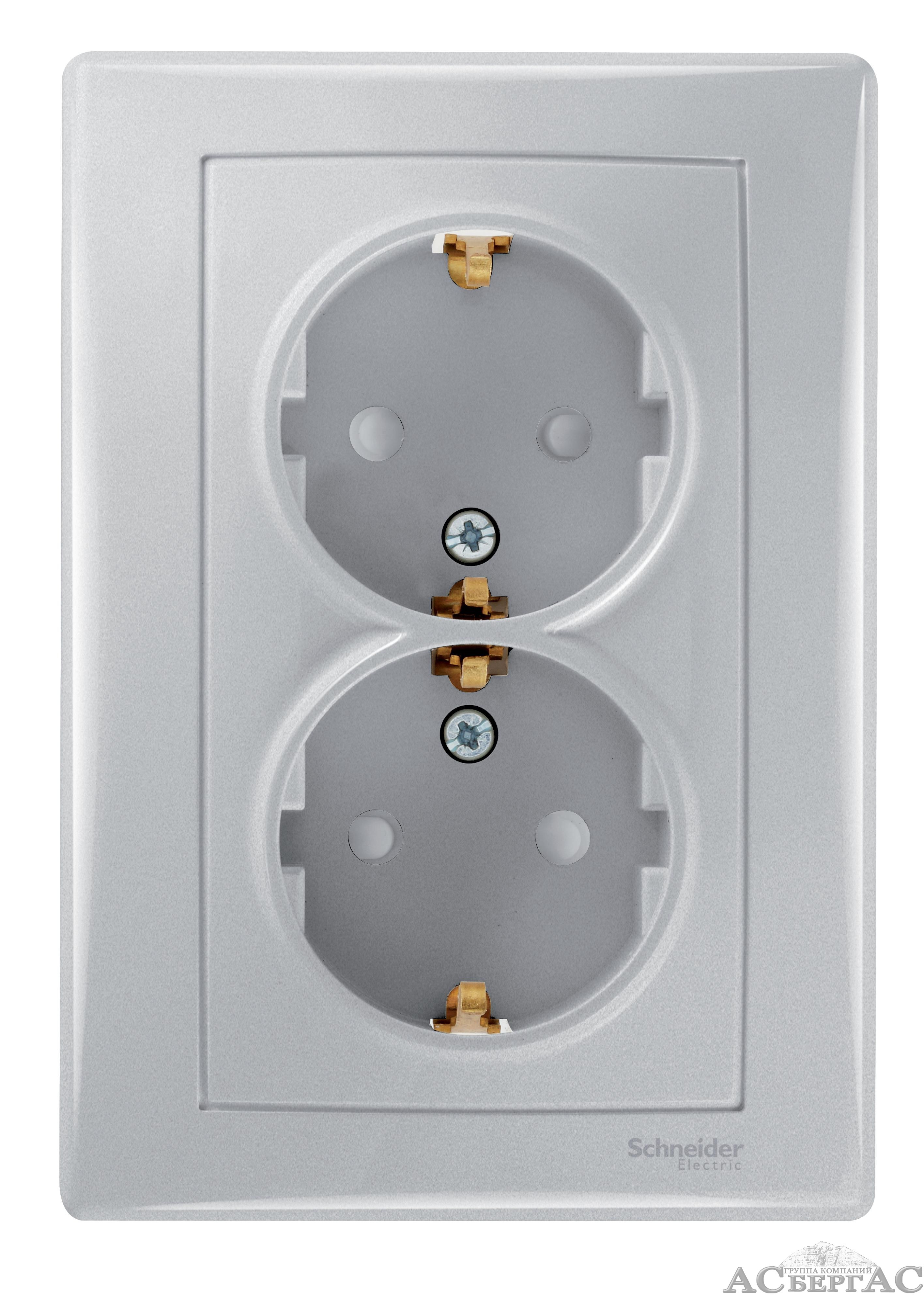Розетка двойная, с зазем. конт., с защит. шторками, 16А, 250В (алюминий) Sedna Schneider Electric