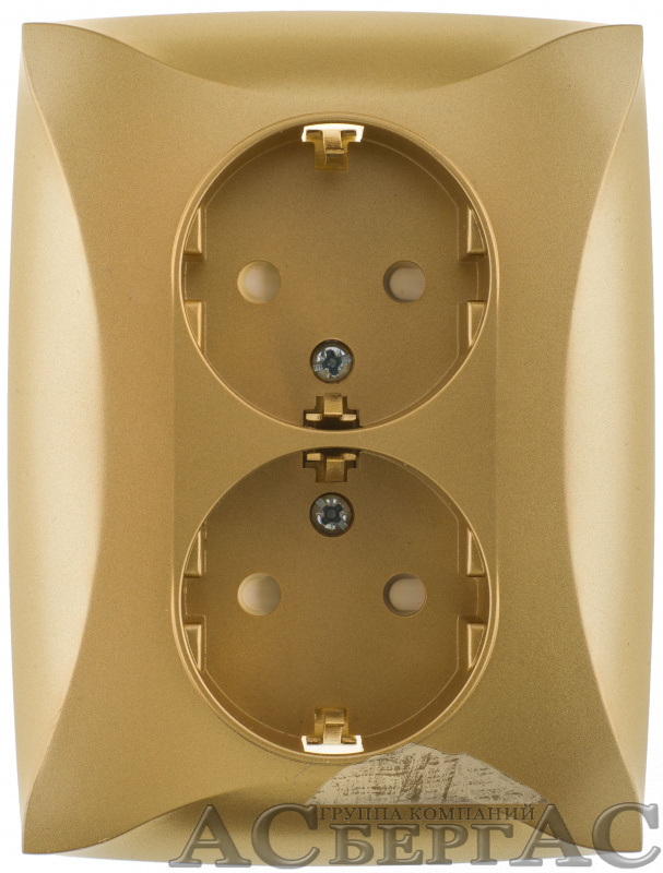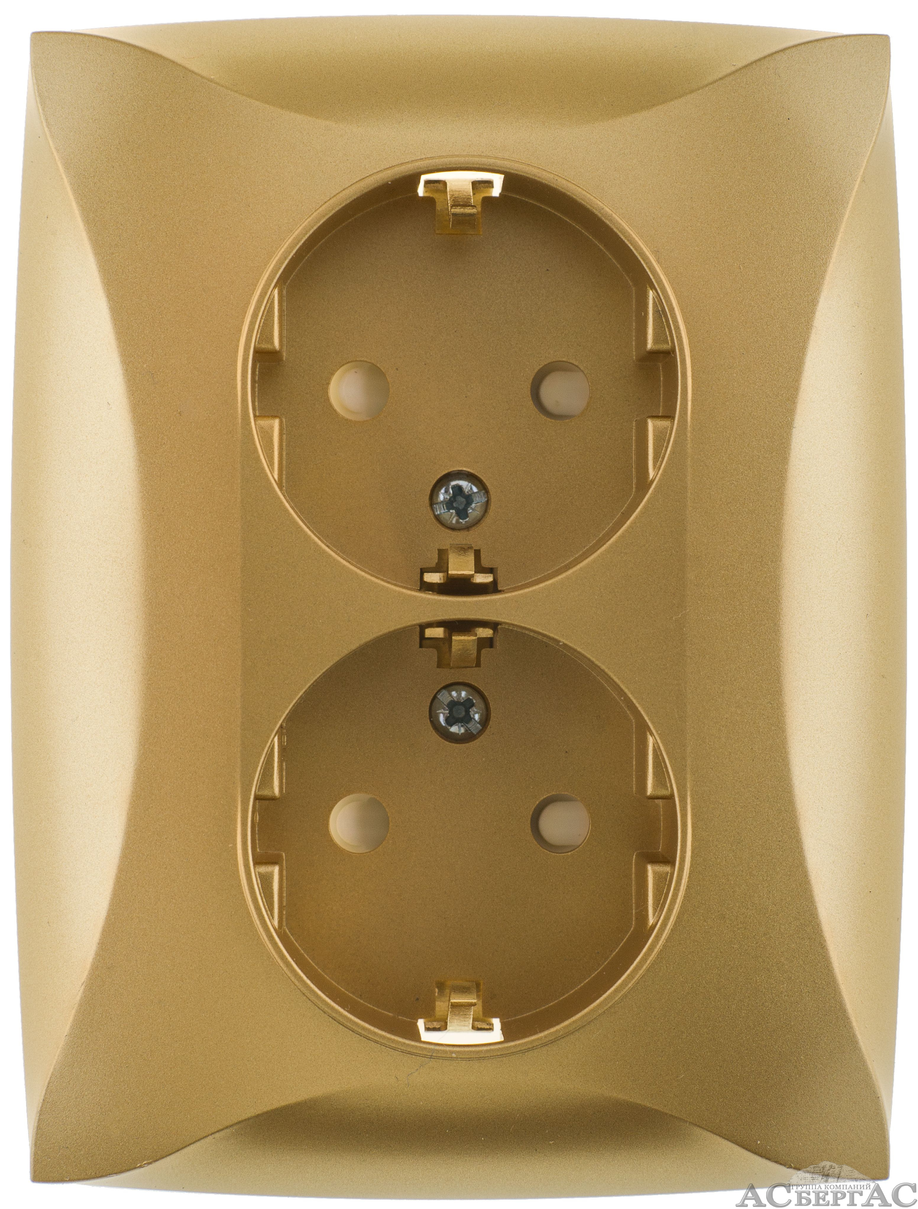 Розетка двойная с заземлением со шторками, 16А, в сборе (шампань) Дуэт Schneider Electric