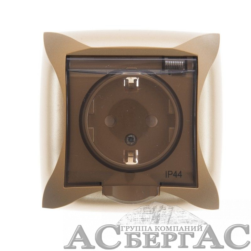 Розетка с заземлением со шторками с крышкой, 16А, IP44, в сборе (шампань) Дуэт Schneider Electric