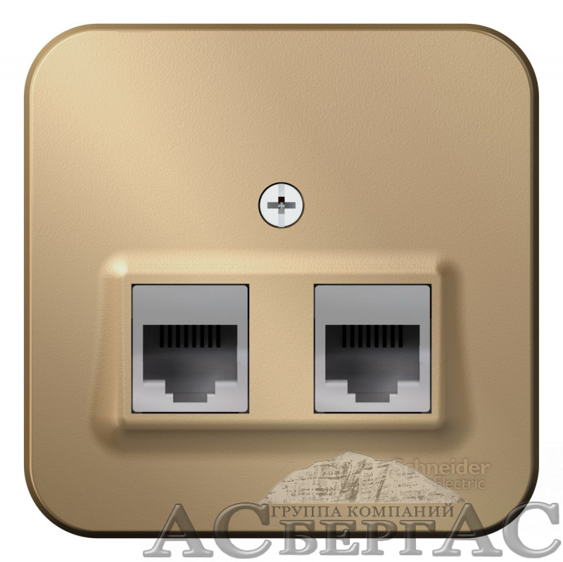 Розетка двойная: RJ45 компьютерная + RJ11 телефонная, изол. пл.,О/У. (титан) Blanca Systeme Electric