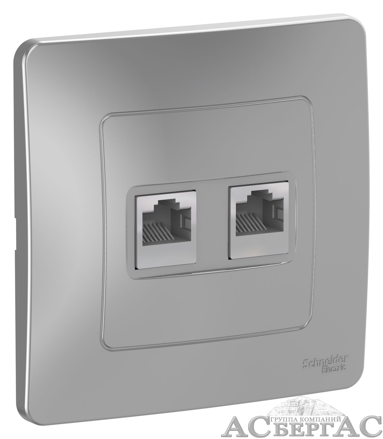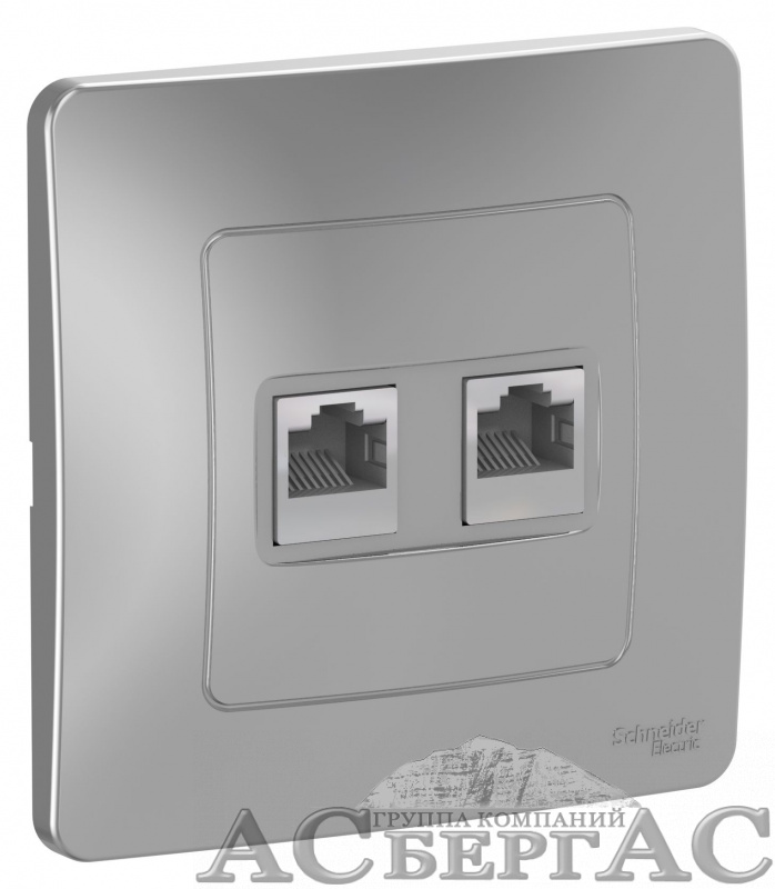 Розетка двойная, С/У: комп.RJ45, кат.5e + телефон. RJ11 (алюминий) Blanca Systeme Electric