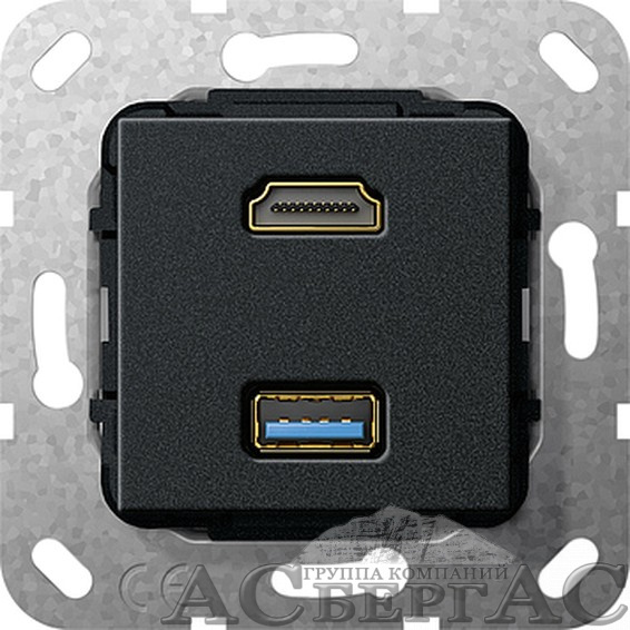 Розетка HDMI+USB (черный) System 55 Gira