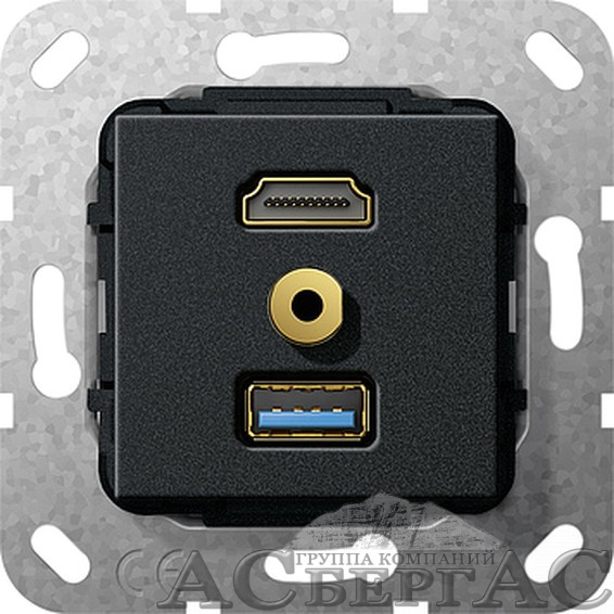 Розетка HDMI+USB+mini-jack (черный) System 55 Gira