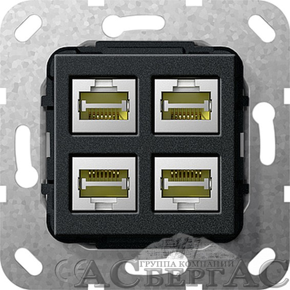 Розетка компьютерная 4xRJ45 (черный) System 55 Gira