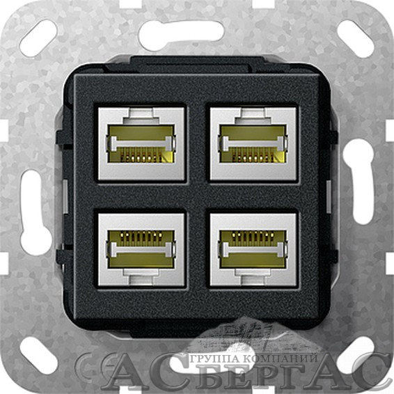 Розетка компьютерная 4xRJ45 (черный) System 55 Gira