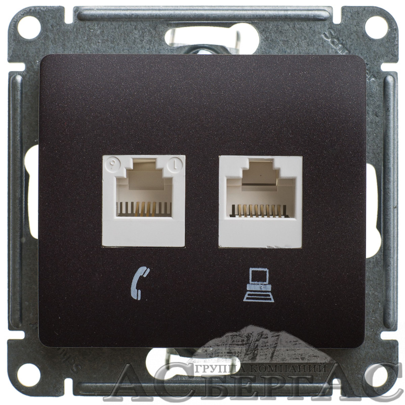 Розетка двойная компьютерная RJ45+RJ45, кат.5e, механизм (шоколад) Glossa Systeme Electric