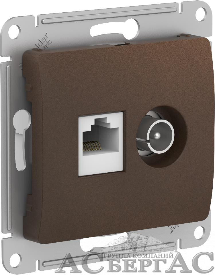 Розетка двойная TV + компьютерная RJ45, кат. 5Е, механизм (шоколад) Glossa Systeme Electric
