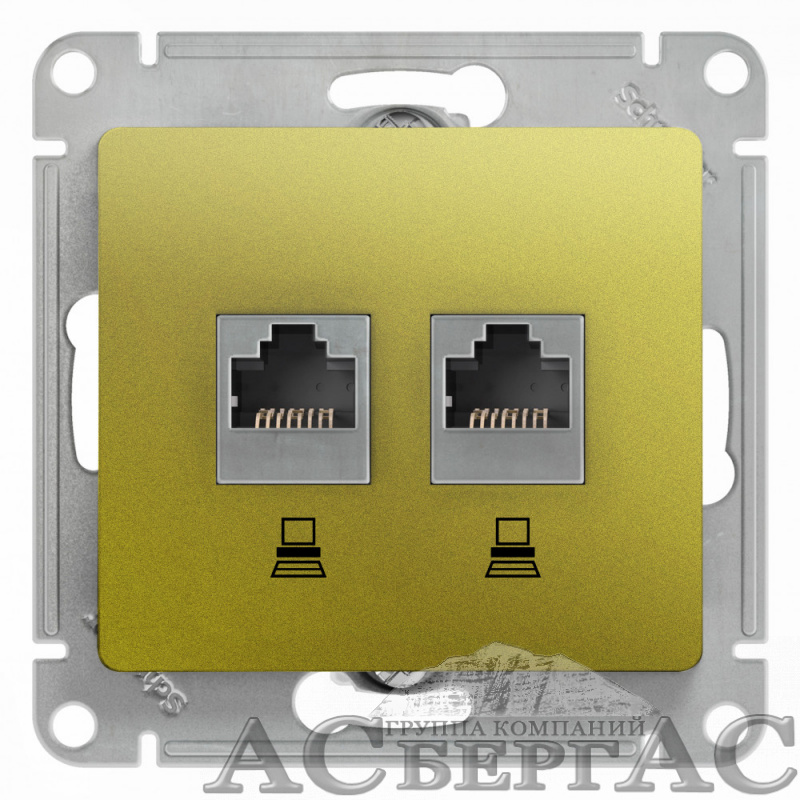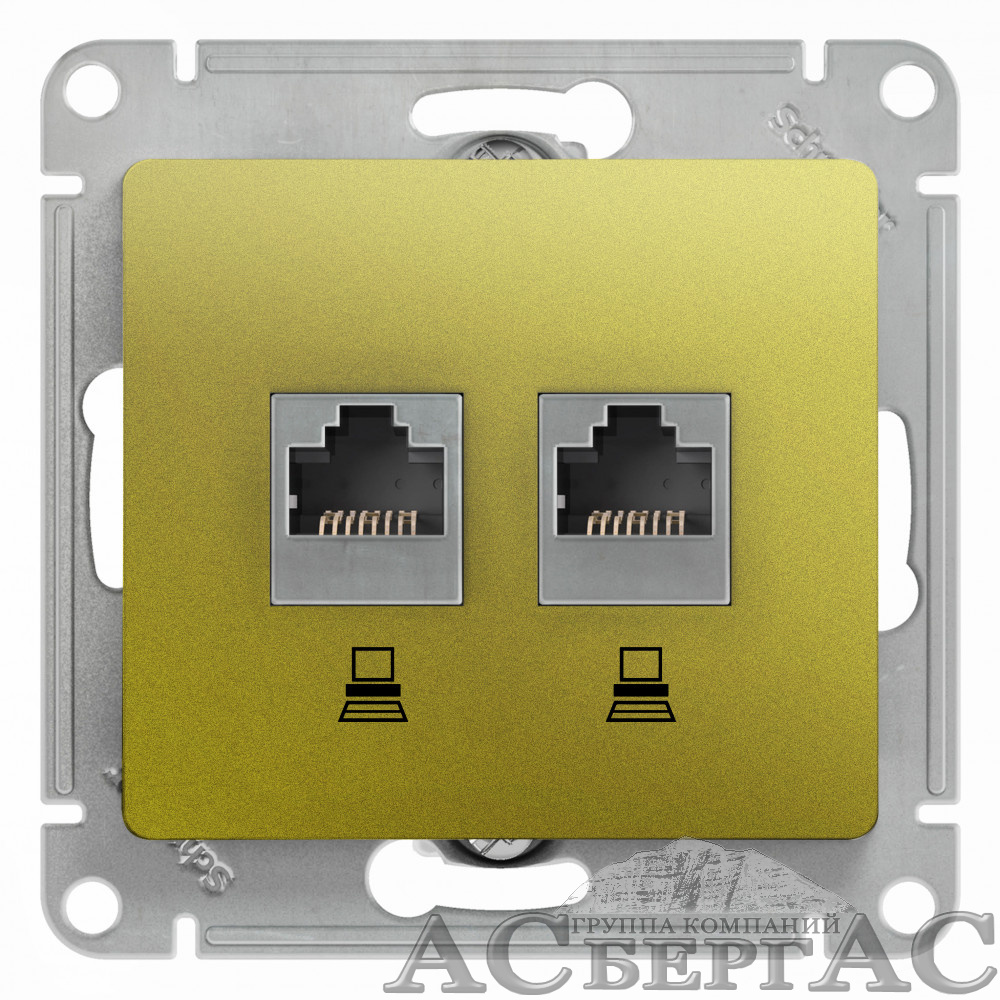 Розетка двойная компьютерная RJ45+RJ45, кат.5e, механизм (фисташковый) Glossa Systeme Electric