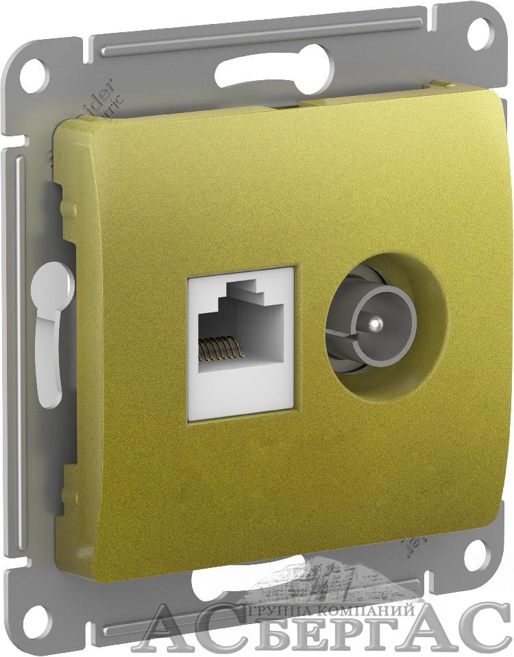 Розетка двойная TV + компьютерная RJ45, кат. 5Е, механизм (фисташковый) Glossa Systeme Electric