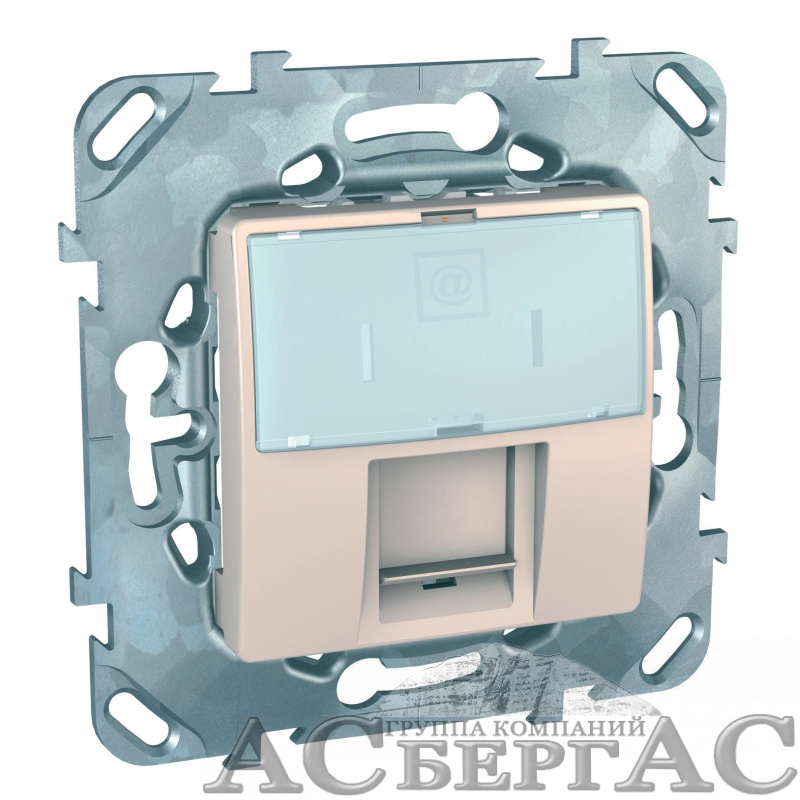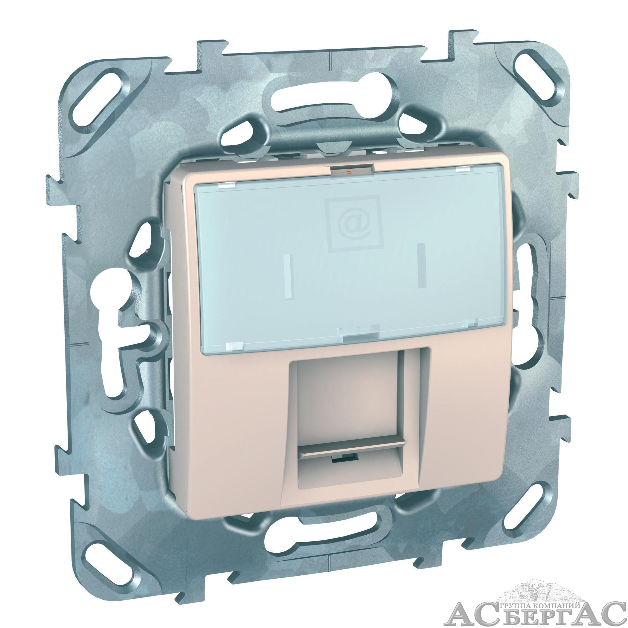 Розетка компьютерная RJ45, одиночная, с полем для надписи, кат.6, (бежевый) Unica Schneider Electric