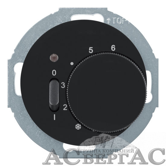 Регулятор температуры помещения с НО контактом, накладкой, 1-клавишным выключателем и светодиодом (черный) R.classic Berker