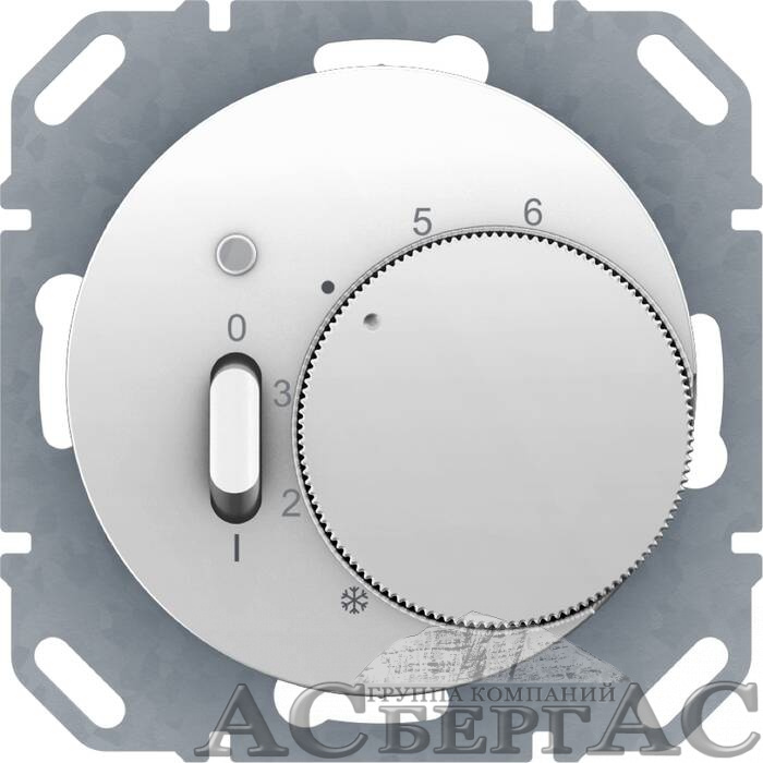 Регулятор температуры помещения с НО контактом, накладкой, 1-клавишным выключателем и светодиодом (полярная белизна) R.1/R.3 Berker