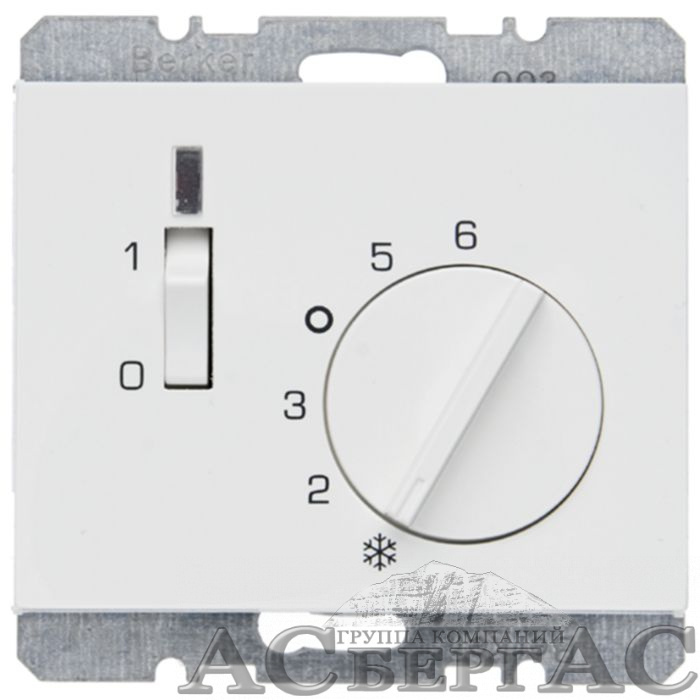 Регулятор температуры помещения с НО контактом, накладкой, 1-клавишным выключателем и светодиодом (полярная белизна, глянцевый) K.1 Berker