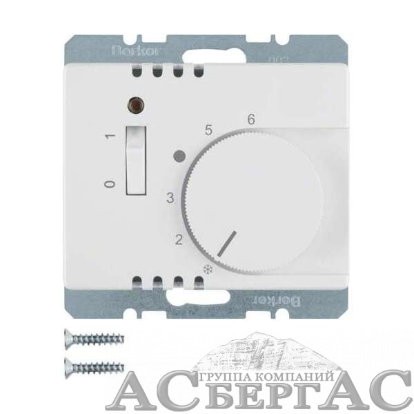 Регулятор температуры помещения 24В, с НО контактом, накладкой, 1-клавишным выключателем и светодиодом (полярная белизна, глянцевый) Arsys