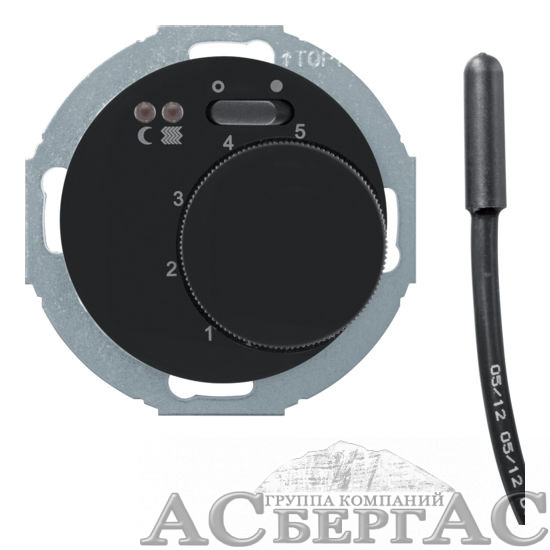 Регулятор температуры помещения пола с замыкающим контактом, с накладкой и светодиодом (черный) R.classic Berker