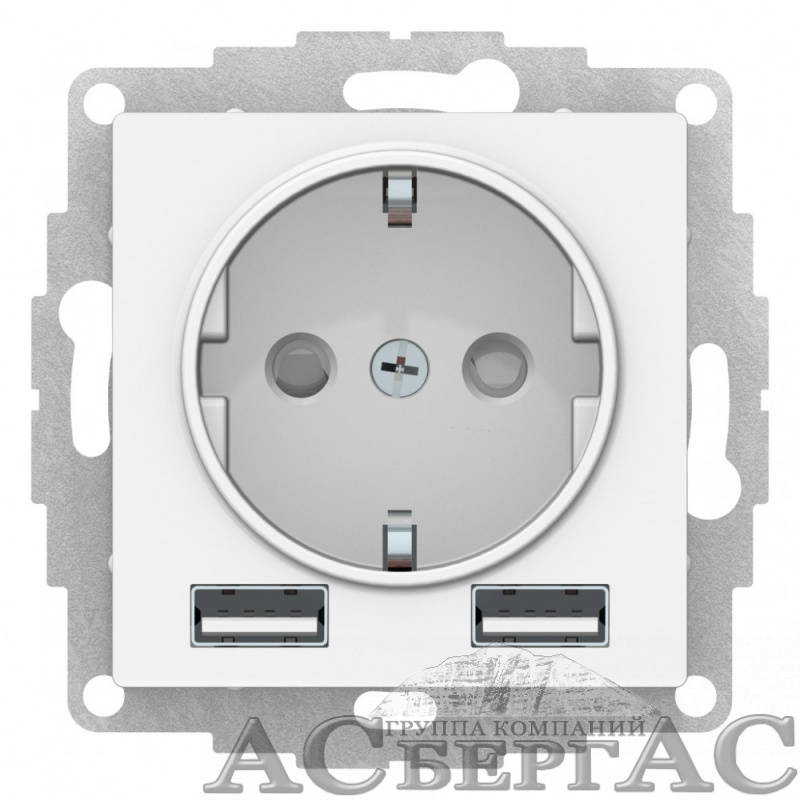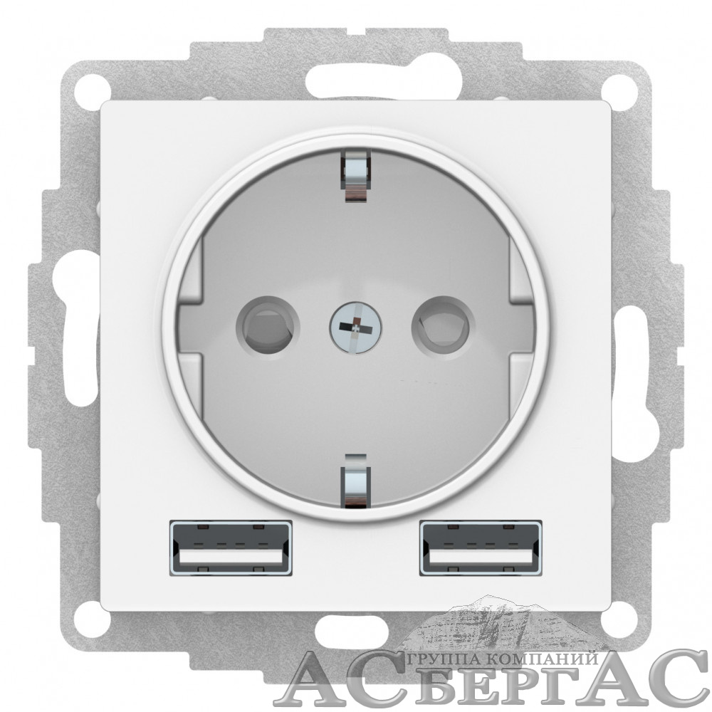 Розетка 2 USB A+A, 16А, 5В/2,4А, 2х5В/1,2А, механизм (белый) Atlas Design Systeme Electric