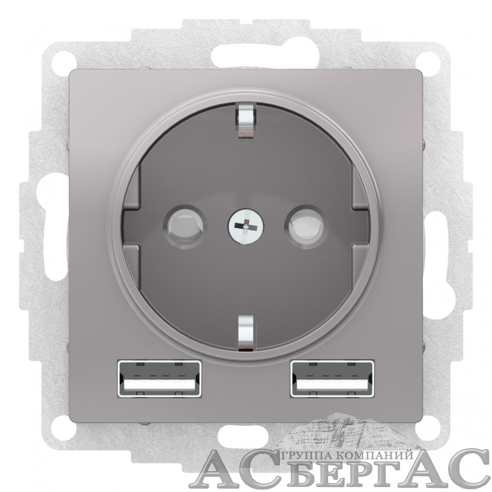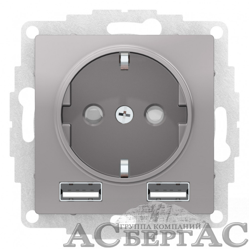 Розетка 16А c 2 USB A+A, 5В/2,4А, 2х5В/1,2А, механизм (алюминий) Atlas Design Systeme Electric