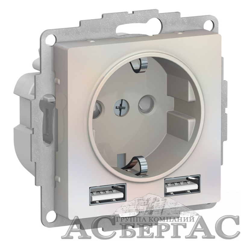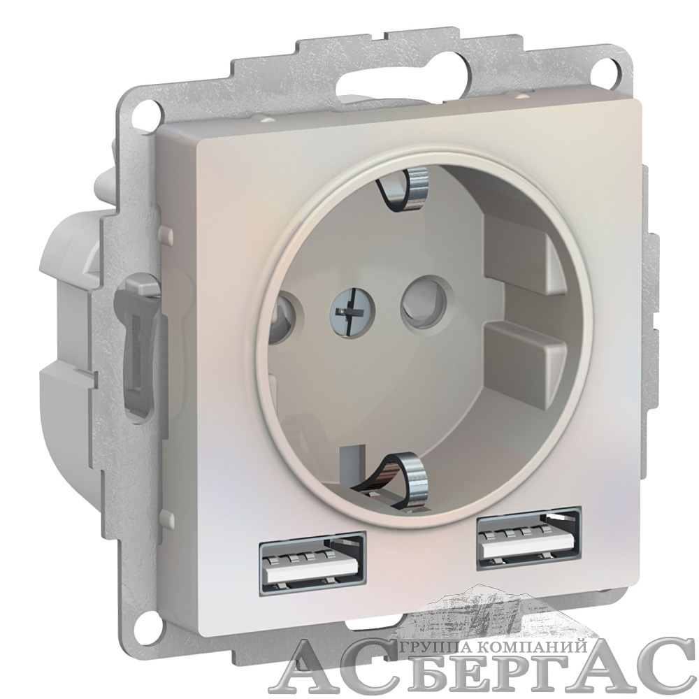 Розетка 16А c 2 USB A+A, 5В/2,4А, 2х5В/1,2А, механизм (жемчуг) Atlas Design Systeme Electric