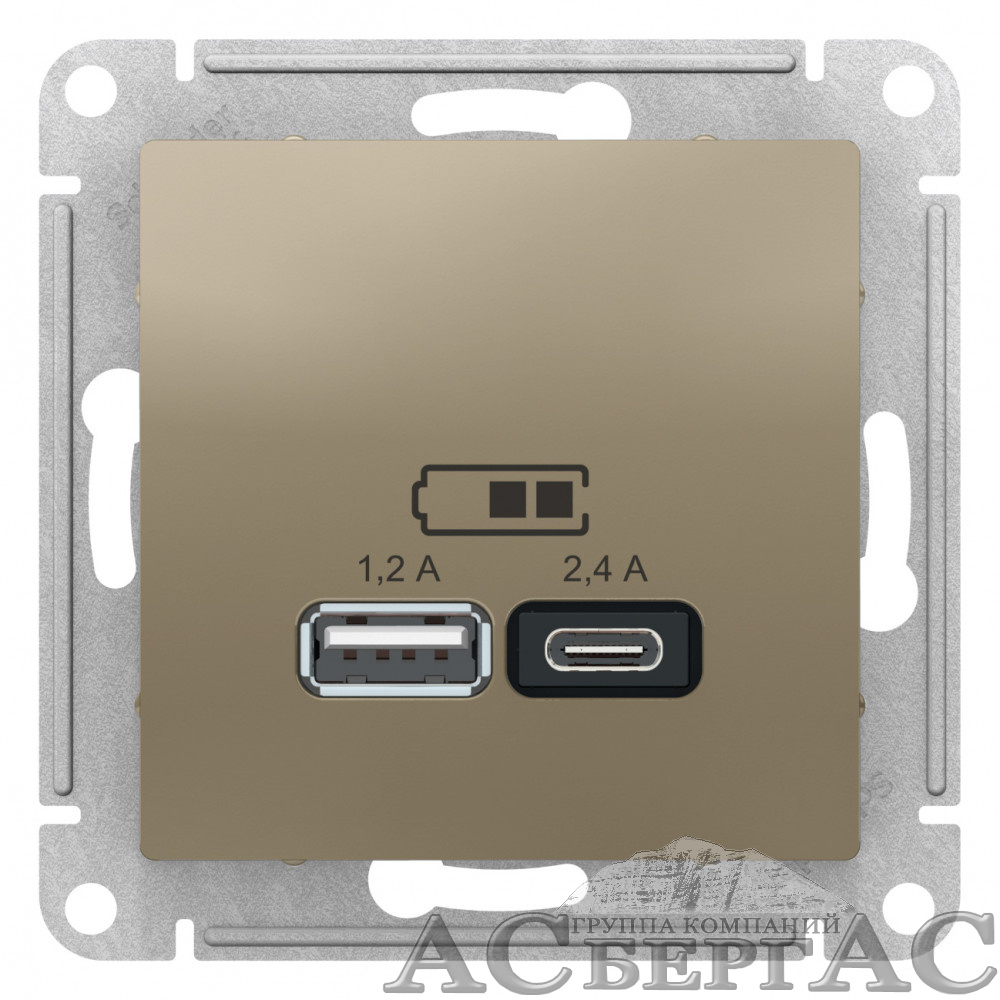 Розетка USB A+С, 5В/2,4А, 2х5В/1,2А, механизм (шампань) Atlas Design Systeme Electric