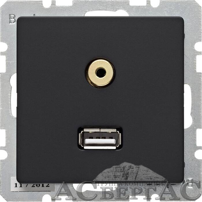 Розетка USB/3,5 мм Audio (антрацитовый, бархатный лак) Q.1/Q.3 Berker