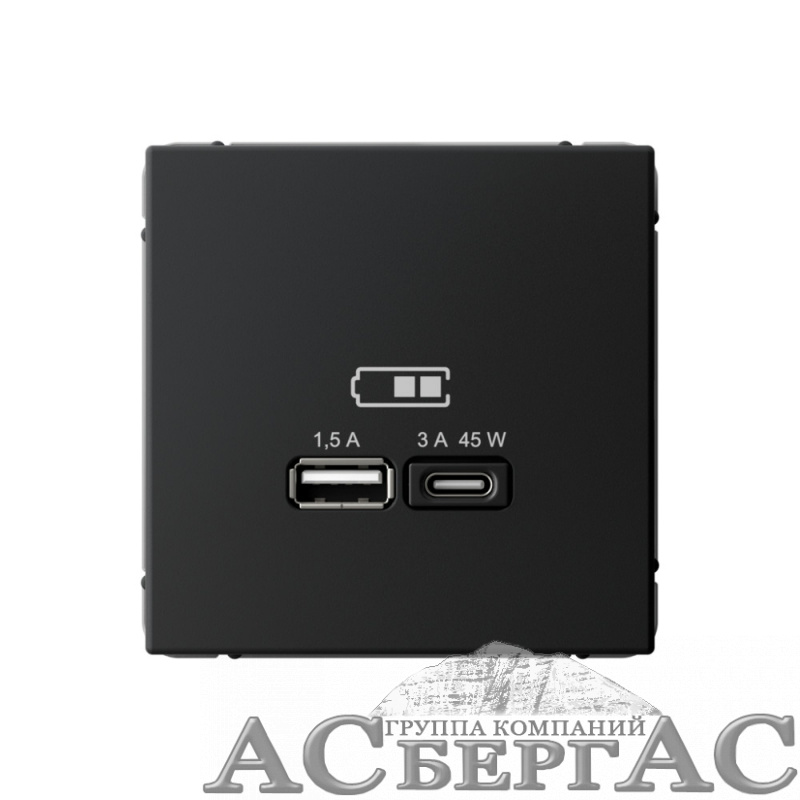 Розетка USB, A + тип-C 45Вт высокоскор.заряд. QC, PD, механизм (карбон) ARTGALLERY Systeme Electric