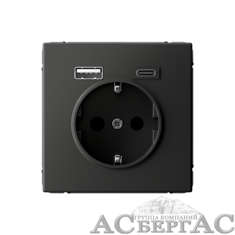Розетка 16А с 2 USB A+C, 5В/2,4А/3,0А, 2х5В/1,5А, механизм (базальт) ARTGALLERY Systeme Electric