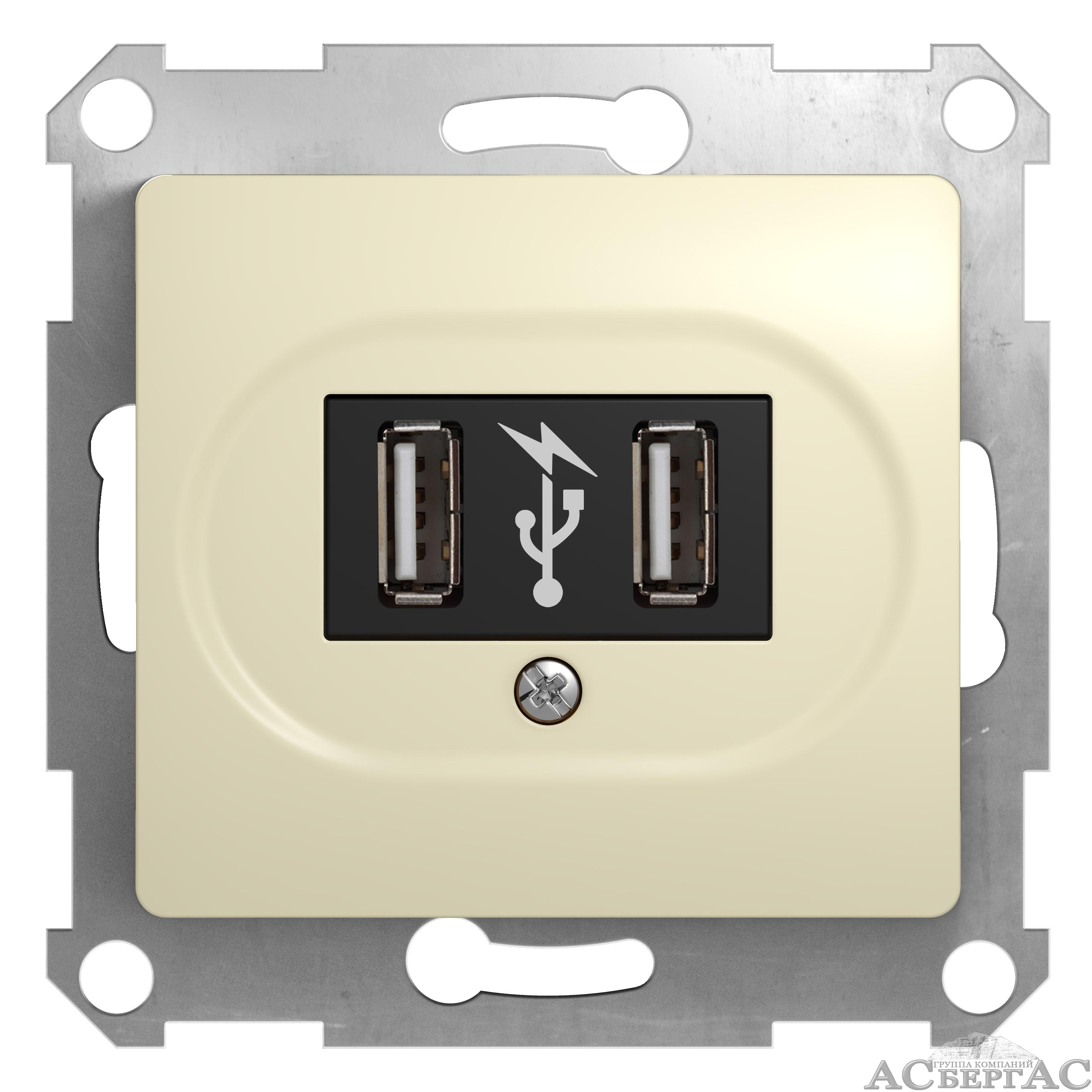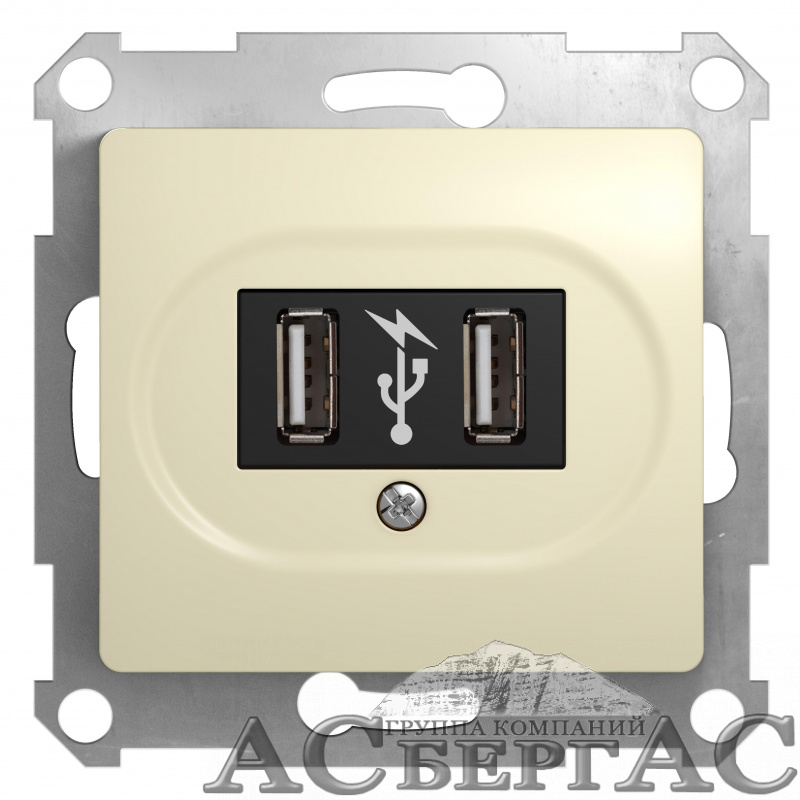 Розетка USB 5в /1400 ма, 2 х 5в /700 ма, механизм (бежевый) Glossa Schneider Electric