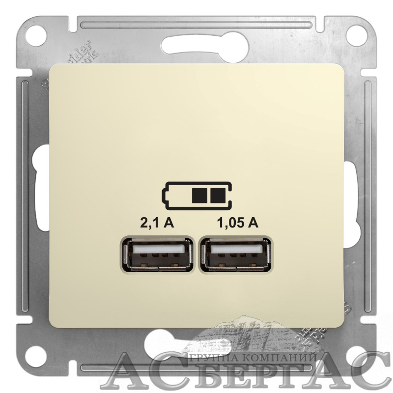 Розетка USB 5в/2100ма, 2х5в/1050ма, механизм (бежевый) Glossa Systeme Electric